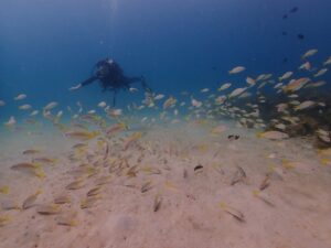 そんな頃に他のゲストから「下に何かを落としたから拾ってくれ~!」って僕らチームの泳ぎっぷりを見ていたもんだから物拾いの依頼も!
