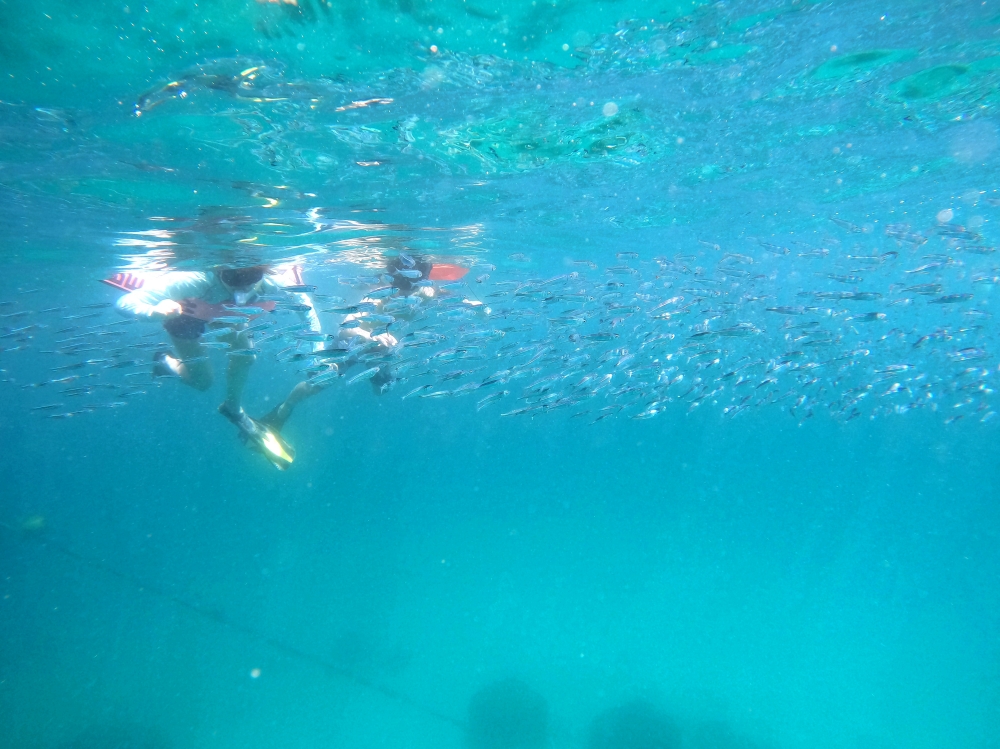 エントリーすると、いきなり水面にいーっぱいの小魚がお出迎え!