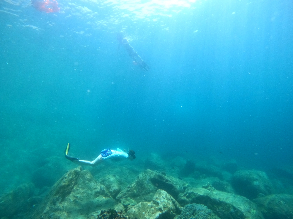 島沿いの浅場の方まで行ったら早速スキンダイビングスタート!