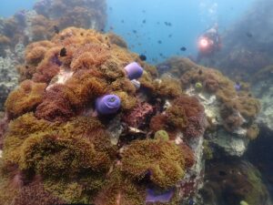 ひたすらクマノミと向き合った1本目を終えて、マヤベイを眺めながらのランチ休憩です!